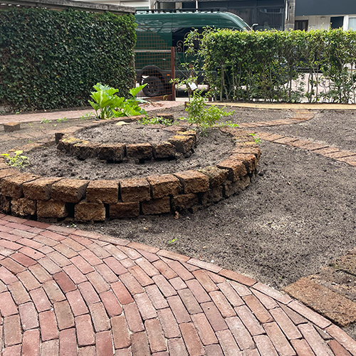 • Bestratingen van paden, terrassen en opritten met klinkers, tegels of grind;