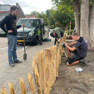 Op 13 september zijn we weer van de partij, er staan weer vrijwilligers klaar en de werkzaamheden zijn voorbereid. Vandaag gaan we een kastanje schapenhek plaatsen en een terras maken van de oude grindtegels die nog op de parkeerplaats aanwezig zijn. Die gaan we breken en dan op z’n kop verwerken als terras. De voegen zaaien we dan in met ‘bloeiende voegen’. Dit is een mengsel wilde bloemen die genoegen nemen met weinig ruimte, droogte en betreding. Dat wordt vast een vrolijke boel!