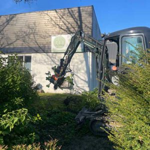 Voorafgaand aan de start zijn de graszoden met de graafmachine van het terrein afgehaald, deze zijn afgevoerd om een schoon werkterrein te hebben. Nu kunnen we beginnen!