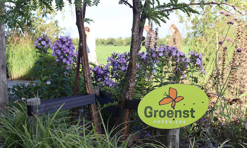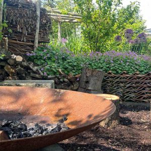Het Groenst Inspiratie Erf gebruiken we uiteraard voor onze klanten die we d.m.v. onze tuin uitleggen wat we voor hun tuinontwerp hebben bedacht. Maar er zijn meerdere doelgroepen die van onze tuin kunnen leren. Het kan een educatieve plek zijn voor jonge mensen die de hoveniersopleiding starten of een plek om kinderen op een speelse manier kennis te laten maken met groen en wat dat allemaal kan doen en betekenen. Onze tuin is ook een informatieve plek voor projecten waarbij meerdere bewoners informatie krijgen over een klimaat adaptieve voortuin. Soms zijn het vakmensen die voor een bepaald thema naar onze tuin komen, bijvoorbeeld ‘Hoe om te gaan met water in je tuin’. Onze ondergrondse watertank, infiltratiekrat en Wadi zijn daar mooie voorbeelden. Het is hier allemaal aanwezig, we kunnen uitleggen en laten zien hoe het werkt. En natuurlijk kun je ’s avonds samenkomen rondom een vuurtje en nog eens iets bespreken.